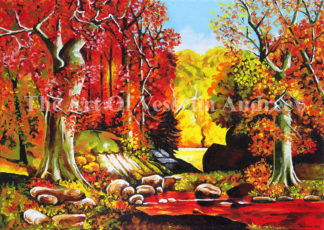 Print Of Original Landscape Oil Painting – Autumn – Red Forest Art Picture Scenery Wall Décor Wood & Nature Artist Andreev