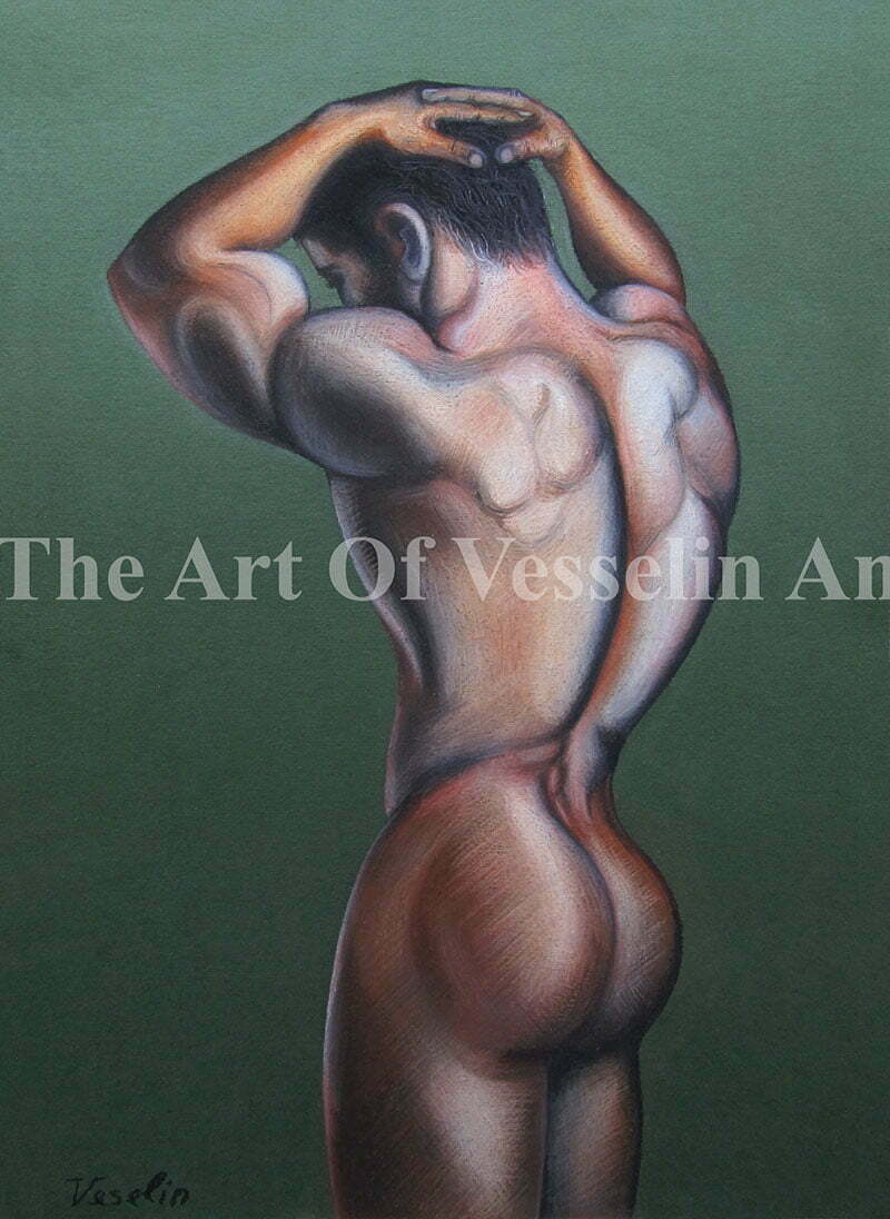 An authentic print of an original male nude pastel drawing titled ‘Under Arrest’. The print is created by me Vesselin Andreev, the artist of the original male nude pastel drawing. The copyright watermark does not appear on the actual print.