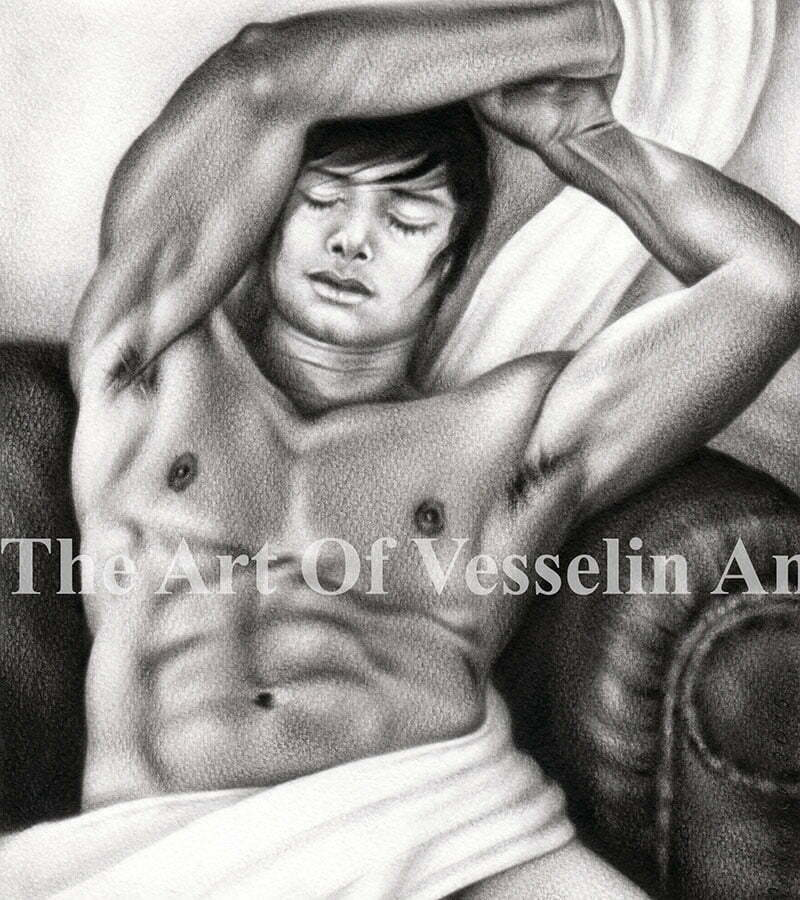 An original male nude oil painting titled ‘Taking A Rest’. The painting is created, signed and dated by me Vesselin Andreev. Please click on the second photo to get the full view of the artwork. The copyright watermark does not appear on the actual painting.