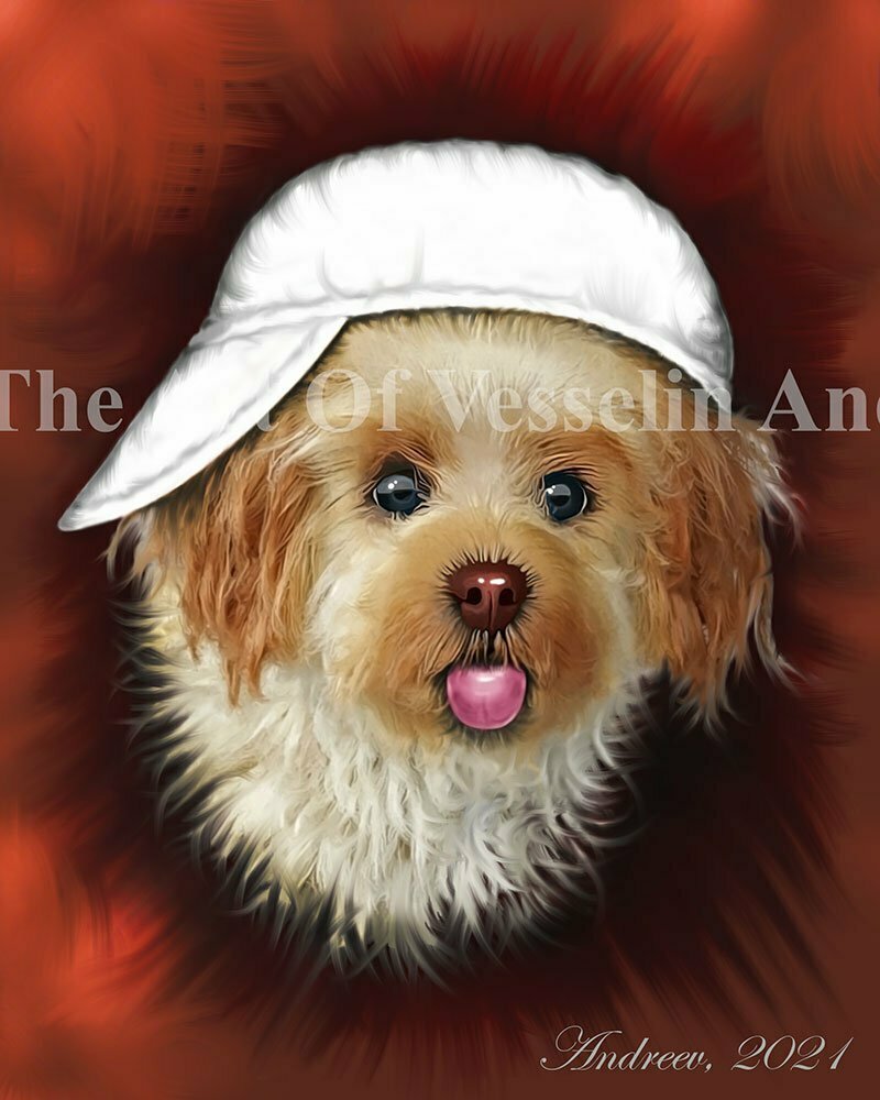 An authentic print of an original dog painting titled ‘Untitled’. The print is created by me Vesselin Andreev, the artist of the original dog painting. The copyright watermark does not appear on the actual print.