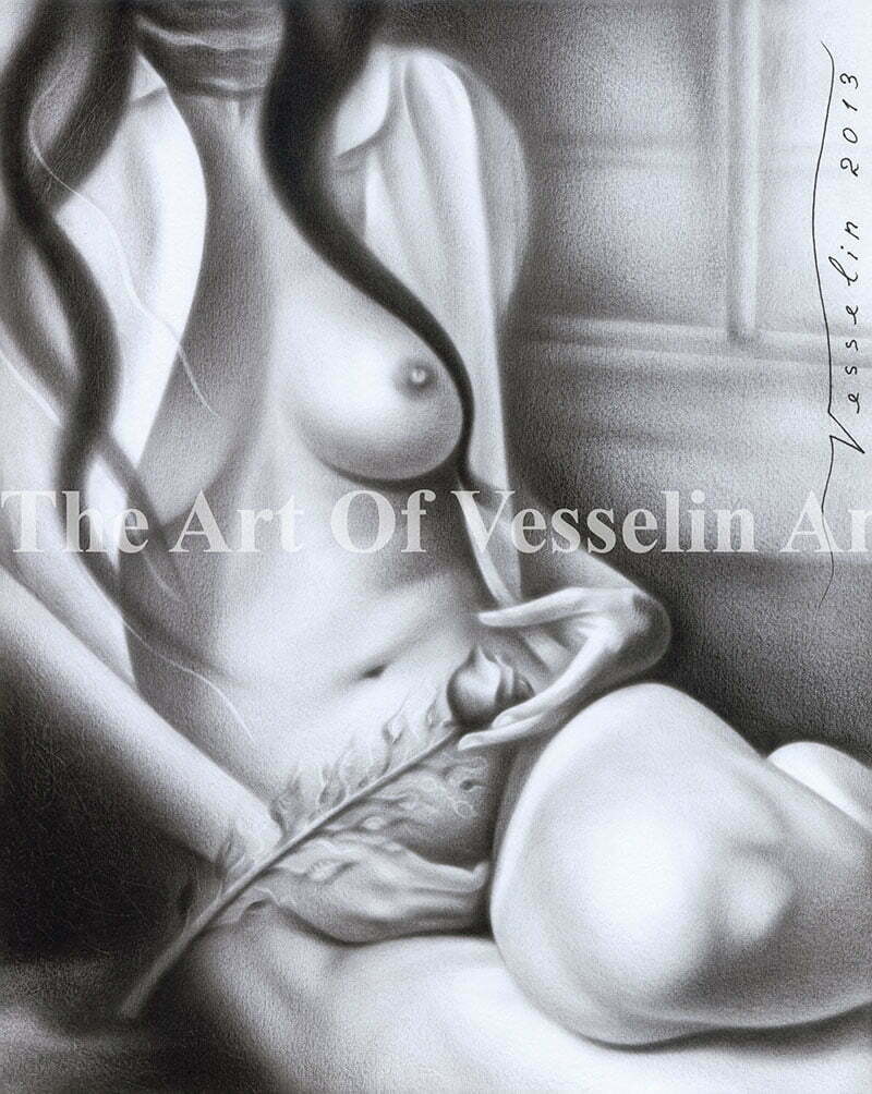 An authentic print of an original female nude oil painting titled ‘The Girl With The Rose’. The print is created by me Vesselin Andreev, the artist of the original female nude oil painting. The copyright watermark does not appear on the actual print.