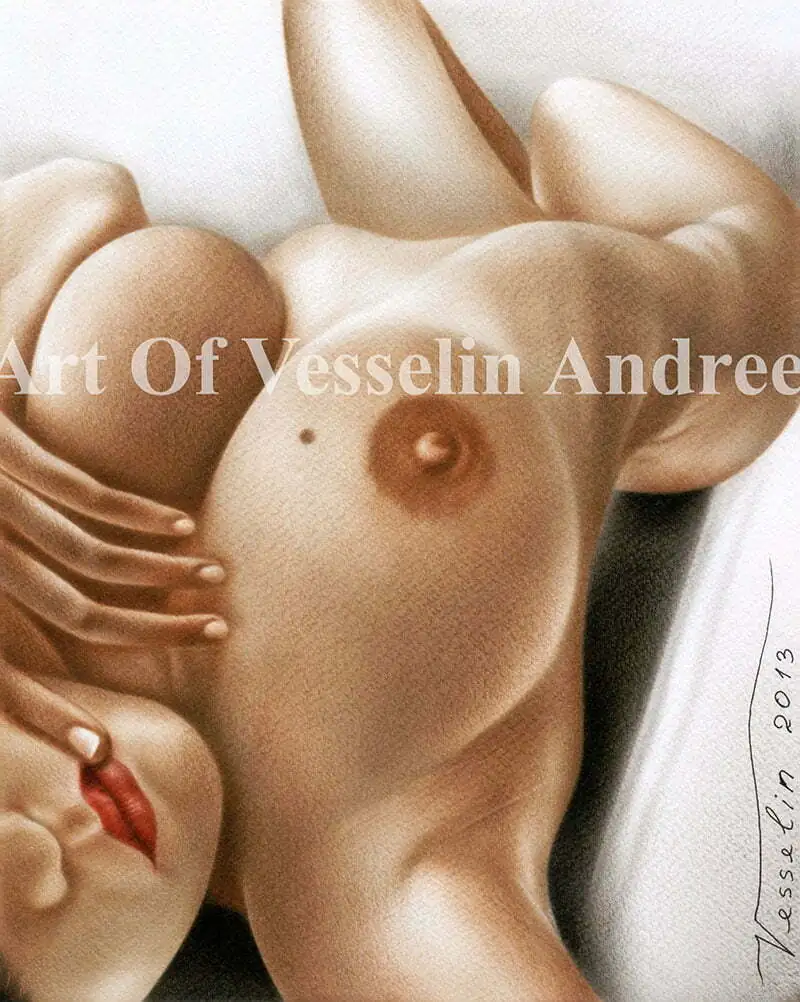 An authentic print of an original female nude oil painting titled ‘Untitled’. The print is created by me Vesselin Andreev, the artist of the original female nude oil painting. The copyright watermark does not appear on the actual print.