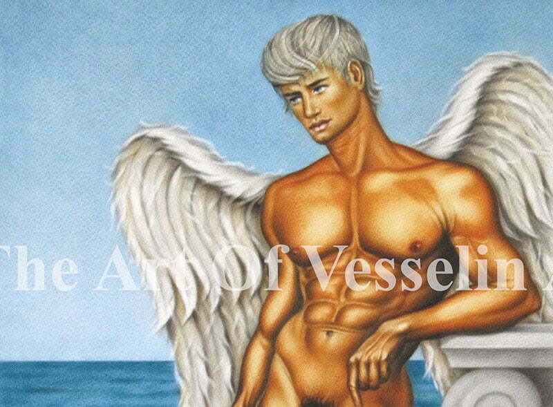 An authentic print of an original male nude oil painting titled ‘Angel’. The print is created by me Vesselin Andreev, the artist of the original male nude oil painting. Please click on the second photo to get the full view of the artwork. The copyright watermark does not appear on the actual print.