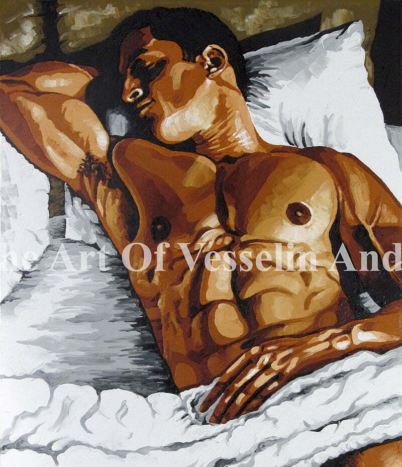 An authentic print of an original male nude oil painting titled ‘Sleeping Man’. The print is created by me Vesselin Andreev, the artist of the original male nude oil painting. Please click on the second photo to get the full view of the artwork. The copyright watermark does not appear on the actual print.