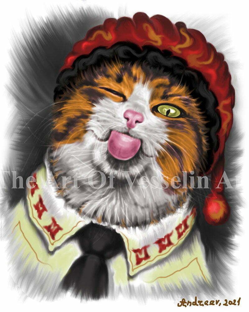 Print Of Cat Painting – Untitled – Funny Cat Portrait Custom Pet Art Tomcat Drawing Picture Puss Artist Andreev