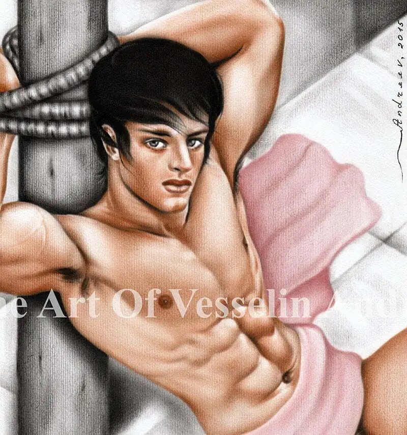 Print Of Male Nude Painting – The Captive – Naked Man Figure Picture Male Nudity Portrait Sensual Erotic Drawing Art Artist Andreev