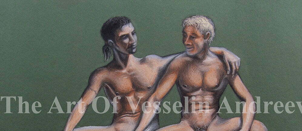 Print Of An Original Male Nude Pastel Pencil Drawing – Friends – Erotic Men Art Picture Artist Andreev Read More ยป