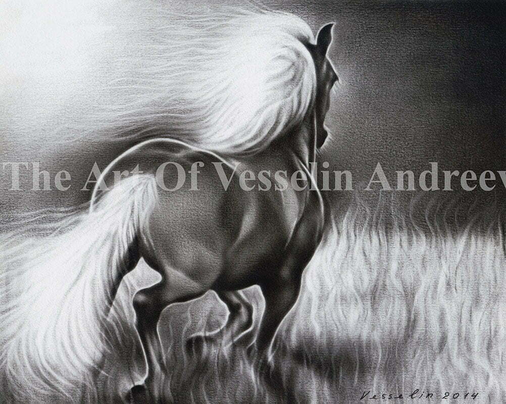 Print Of An Original Oil Painting Of Horse – Untitled – Black & White Animal Art Picture Artist Andreev