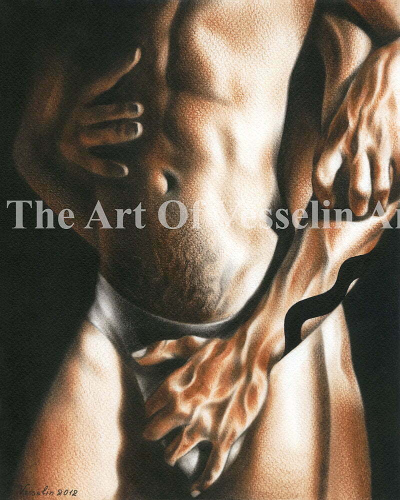 An authentic print of an original male nude pastel drawing titled ‘Love’.