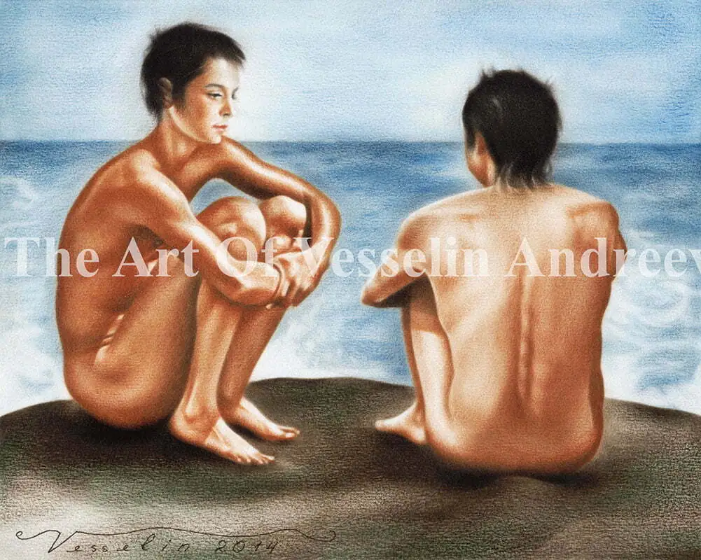 Print Of Male Nude Painting – Boys On The Beach – Naked Figures Drawing Picture Male Nudity Art Artist Andreev