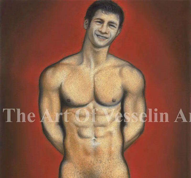 Print Of An Original Male Nude Pastel Drawing – Smiling Man – Erotic Art Picture Artist Andreev