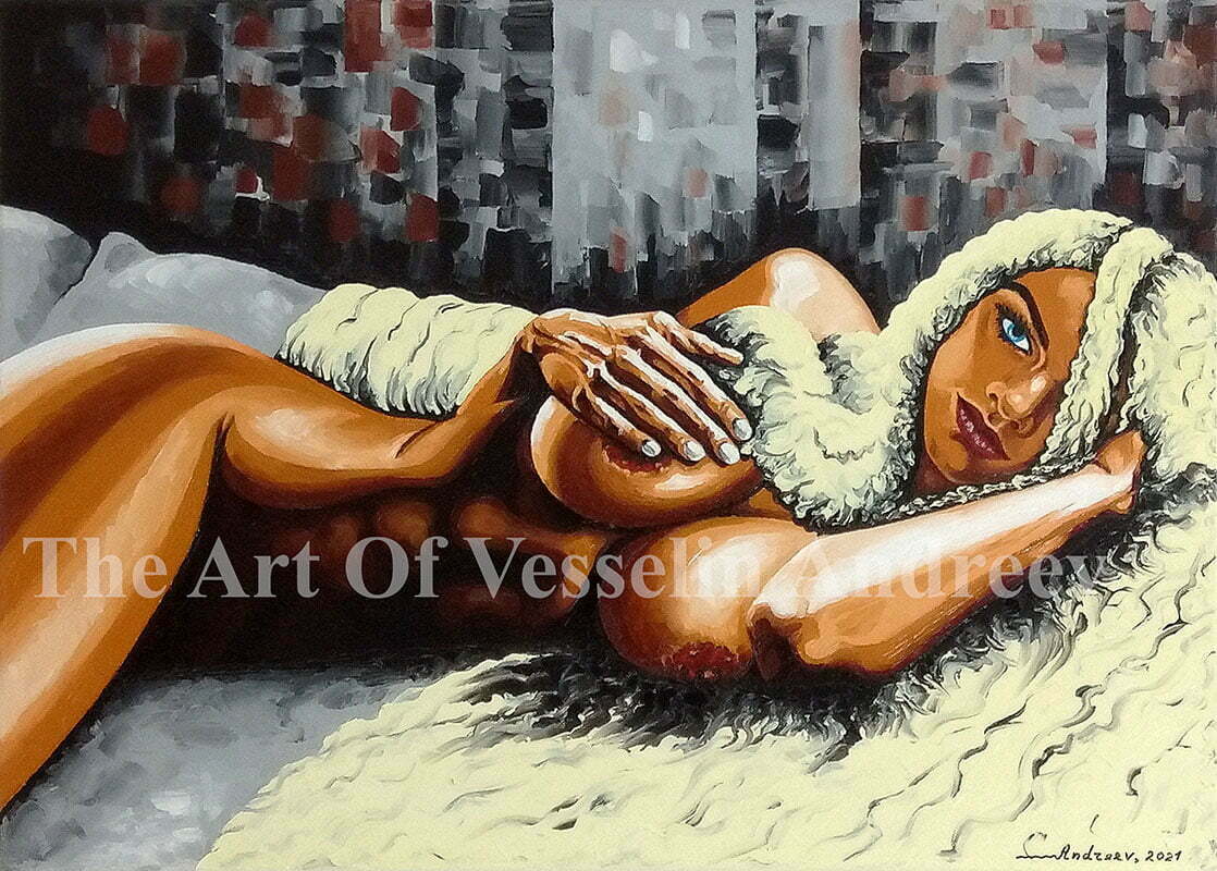 Female Nude Oil Painting – Lioness – Original Erotic Art On Canvas Blonde Art Picture Naked Woman Figure Female Wall Hanging Artist Andreev